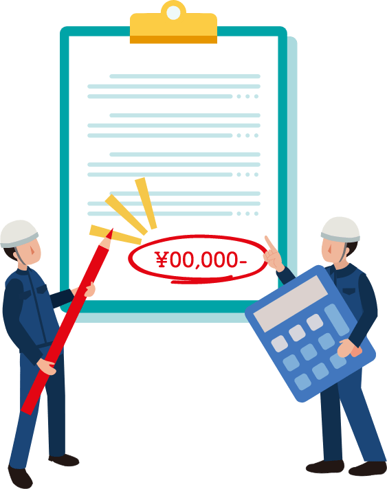 適正価格をご提示。お客さまのことを一番に考えて、少しでも安い費用でご要望を叶えられるようにアイデアを出します。御見積は最初から駆け引きなしのギリギリ価格。だからそれ以上の値引きはご勘弁ください。