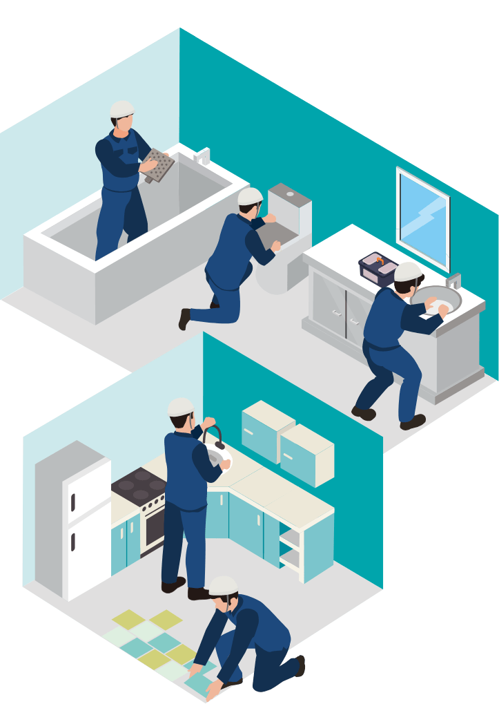 設備入れ換えまで対応。塗装やパネルシート貼りによる浴室・浴槽のリメイクが専門ですが、設備の入れ換えも対応可能です。浴室だけでなく、洗面所やキッチンのリフォームについてもご相談に応じます。